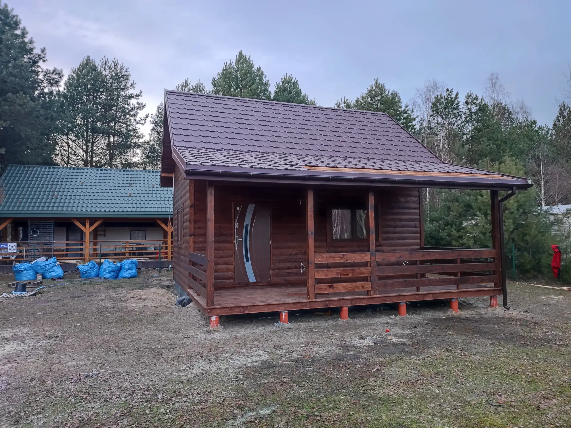 - • wewnątrz dom wykończony w drewnie lub w płycie GK(podwójne płytowanie)
